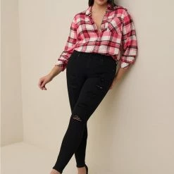 TORRID Lizzie Brushed Rayon Acrylic Button-Down Long Sleeve Shirt