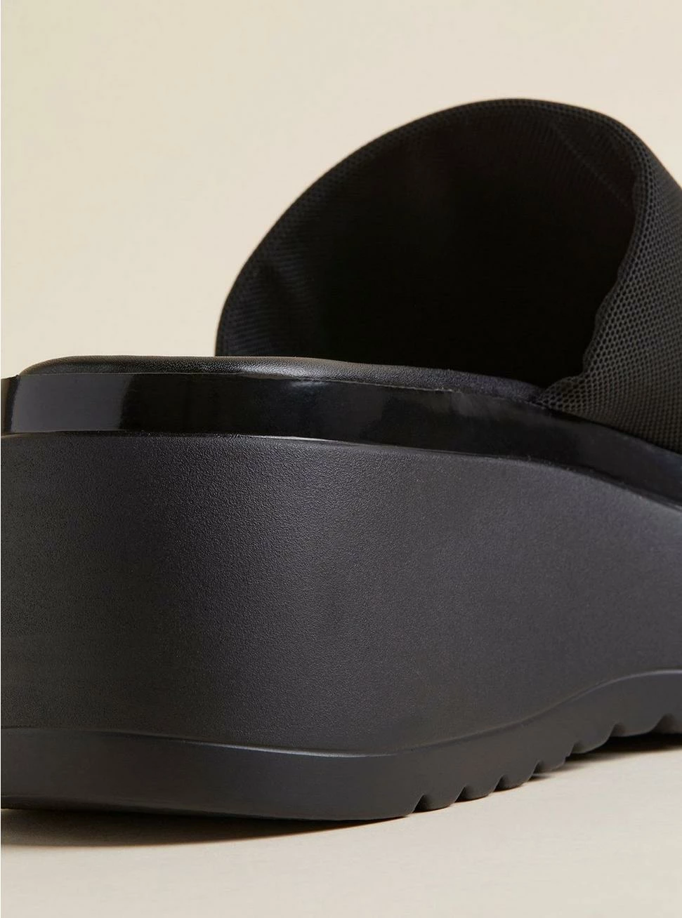 - Chunky platform heel.