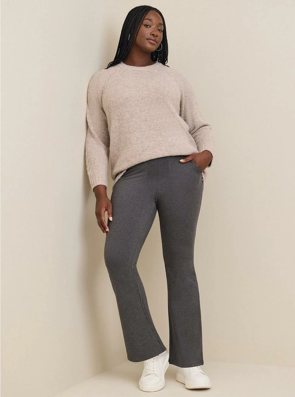 - Thick cotton-blend fabric that smooths and flatters.