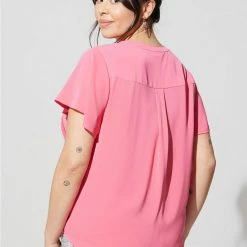 - Studio Crepe de Chine woven fabric: A travel-ready, drapey fabric with a luxurious feel and a light sheen—your polished look is as easy as wash, wear and go. Â