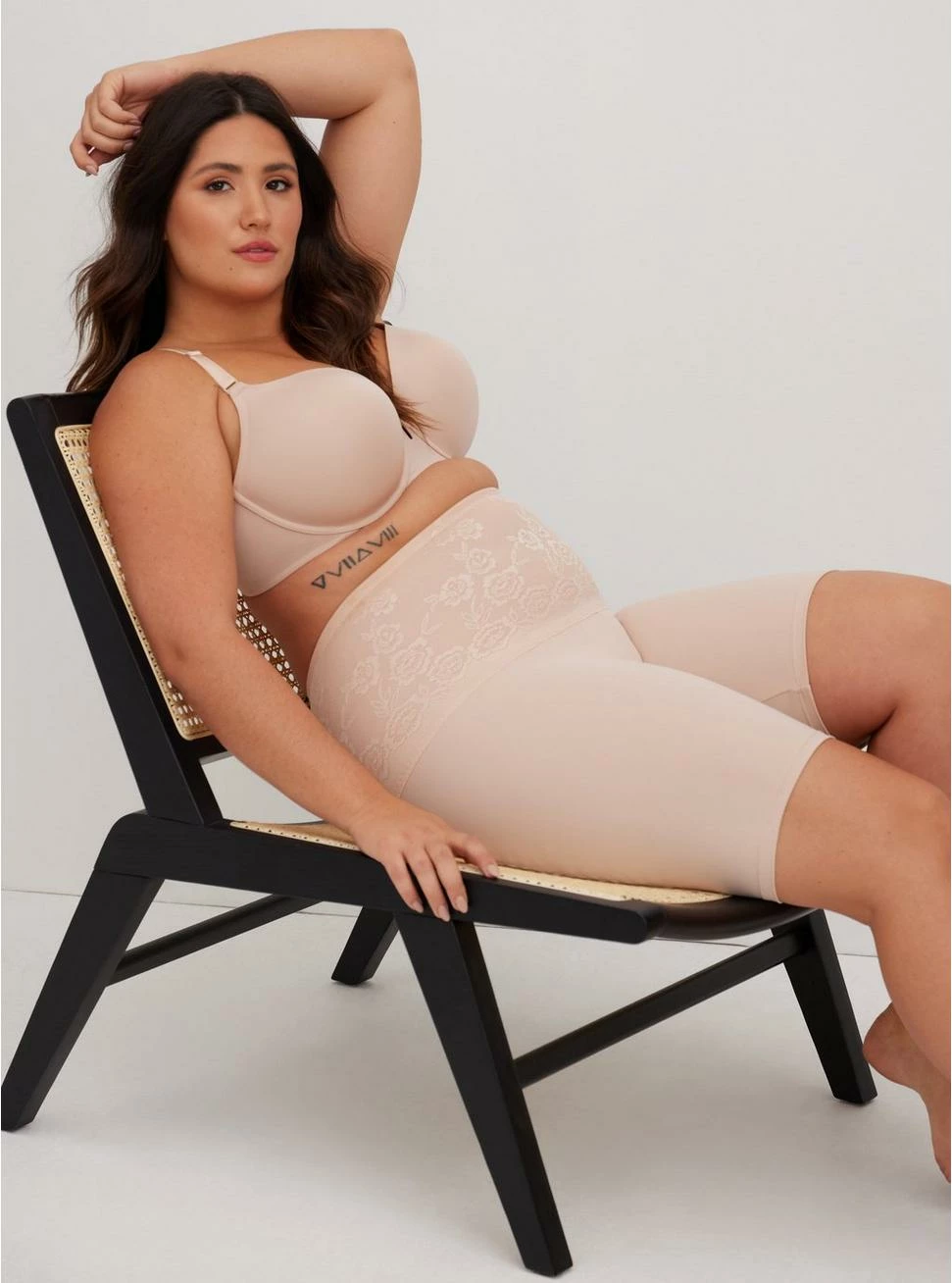Meant to be worn under anything (try them under your favorite dresses!), the tonal lace waistband sits high on your waist for smoothing purposes. The silky microfiber shorts have a second-skin fit, holding you in and lifting you up.