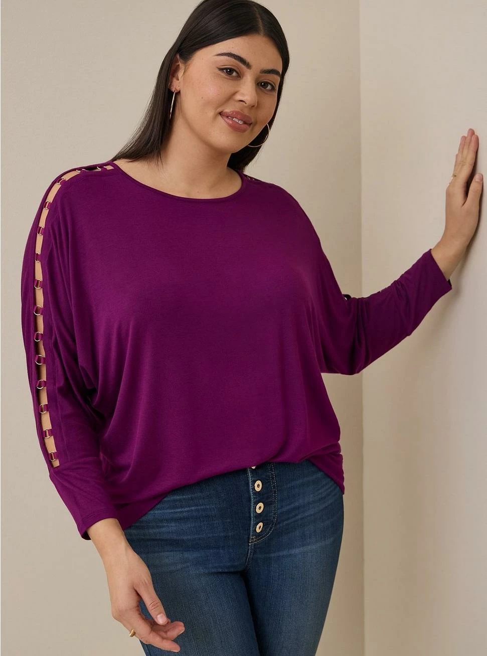 - Super Soft knit fabric: An incredibly soft, versatile knit that hugs close to the body.