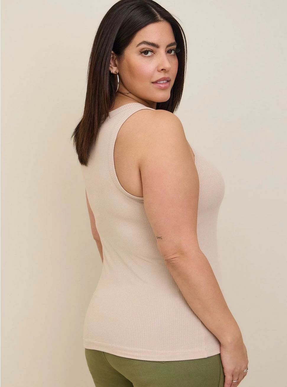 - Super Soft Rib knit fabric: An incredibly soft, versatile knit with a ribbed texture that hugs close to the body.