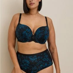 - Padded, underwire cups.