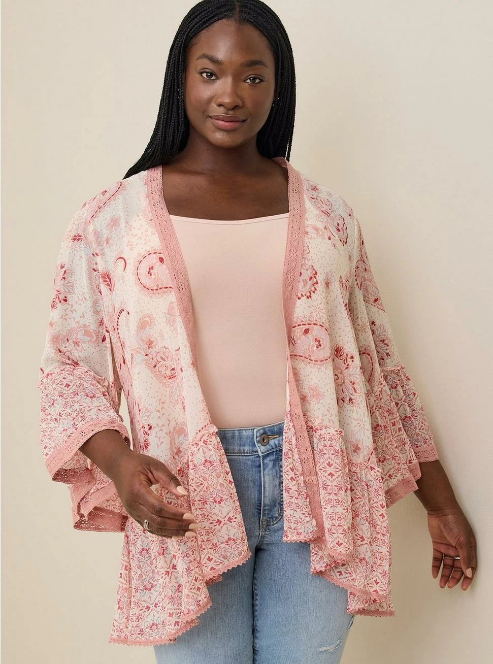 - Kimono silhouette.